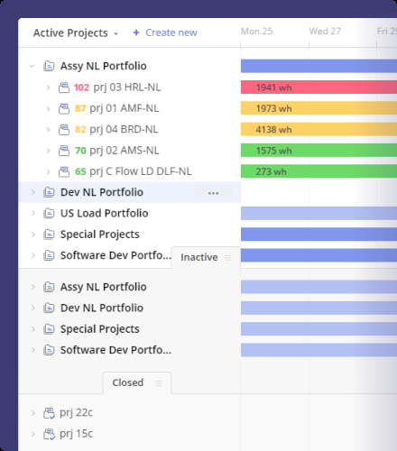 You can always keep an eye on the state of your project environment with all its projects and milestones to be able to oversee and timely respond to any occurring changes.