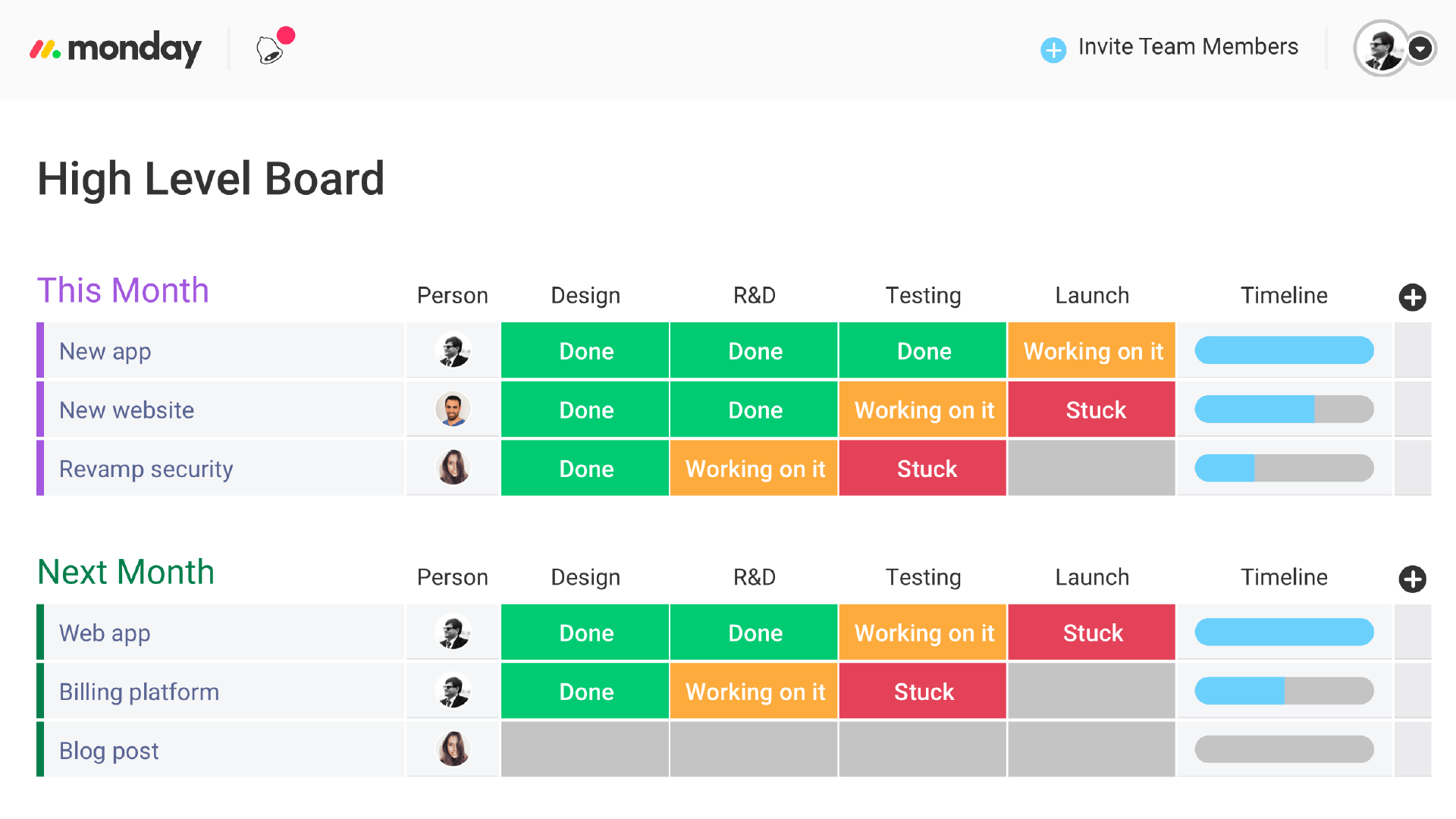 Monday.com is a business process, task, team, and project management software solution that can be applied in various fields of business such as advertising, production, consulting companies and more. Monday.com makes it possible to manage your projects using either Kanban, calendar, timeline, or table view. It offers different templates for client projects, customer tickets, and sales pipeline.
