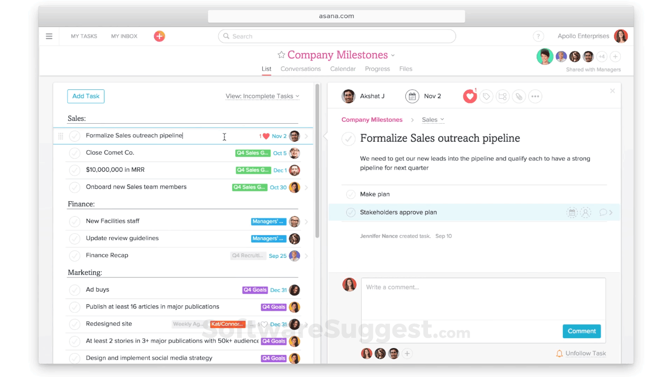 Asana is a multi-project management tool with a great number of functions for various business areas, from fashion to manufacturing. The solution can streamline workflows, ensure alignment across multiple projects, and helps manage resources.