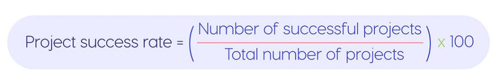 Project success means its delivery on time, within budget, within the defined scope, in line with customer expectations, and meeting the expected quality standards. In fact, these criteria may vary in different organizations for different projects. Project success rate helps assess the percentage of projects that were delivered successfully. To calculate this indicator, you can use the formula: