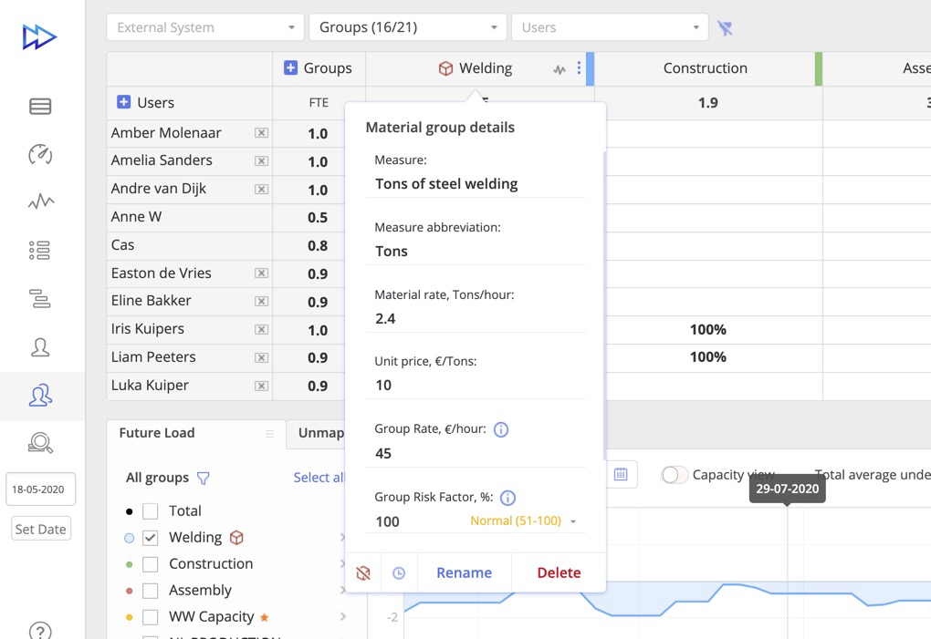 With Epicflow you can create various types of resources, specify their price, hourly rate, measurement unit, risk factor and use more settings to make sure your project is planned perfectly.