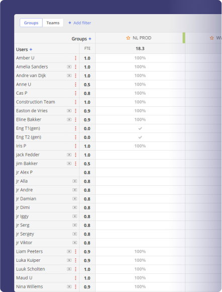 Organize your resource pool most conveniently with Epicflow project management software for IT: you can divide your resource pool into functional groups based on chosen characteristics and unite them into multigroups for easier management or create project teams. Control team’s capacity, automatically adjust it, assign budget and monitor its consumption, and more.