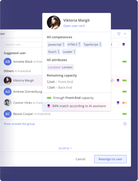 Assign the right tasks to your resources semi-automatically based on capacity, availability, competencies, and attributes with competence & attribute management feature and enjoy improved productivity and the highest-quality project outcomes.