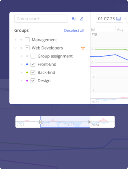 Epicflow uses predictive analytics to foresee resource-related risks and warns you about any threats beforehand, so you always have enough time to choose the best mitigation strategy.