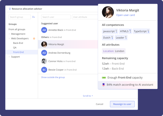 Forget about mistakes and the need for rework, which results in missed due dates. Find a perfect resource for every project task based on competences, experience, and attributes, and enjoy seamlessly delivered scope of work on time.
